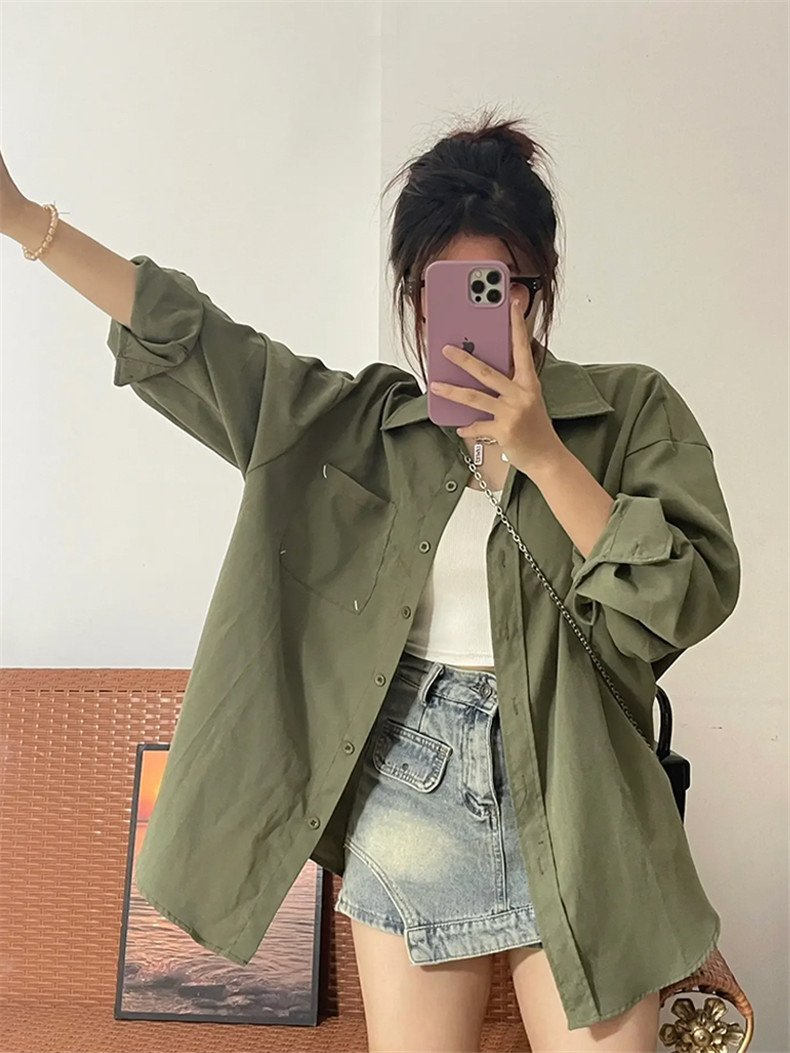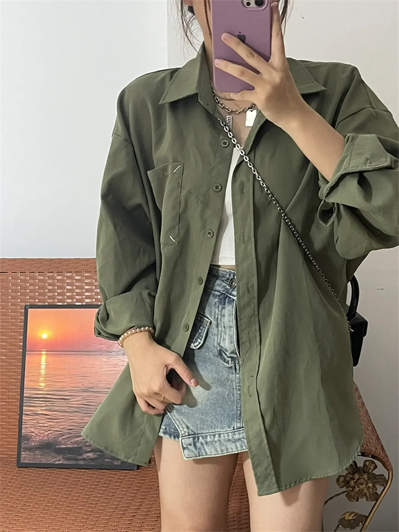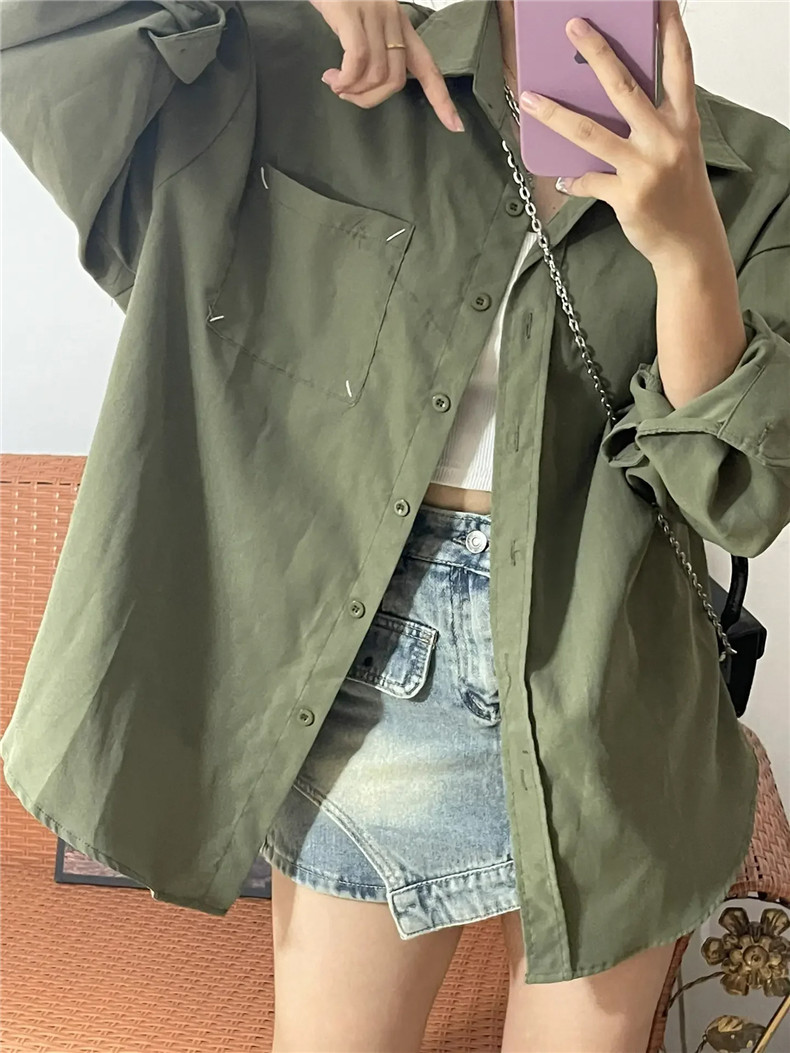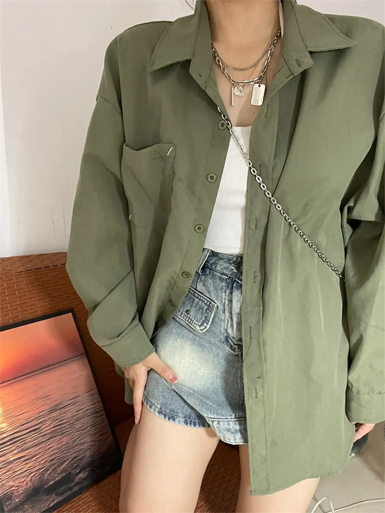 American Retro Green Shirt Cardigan Women's Spring And Autumn Coat