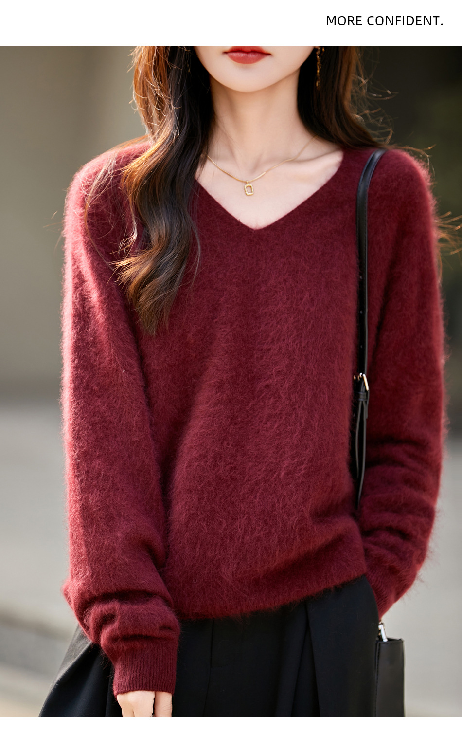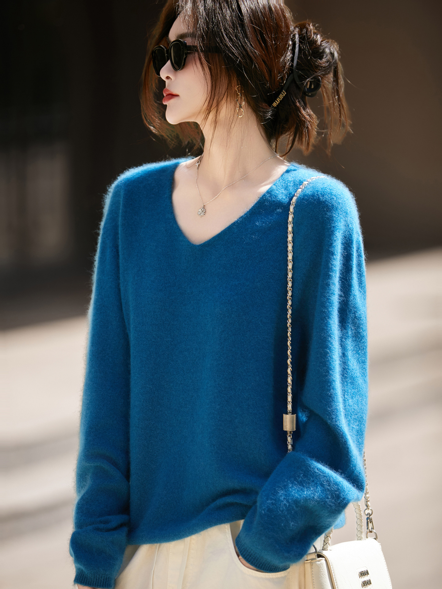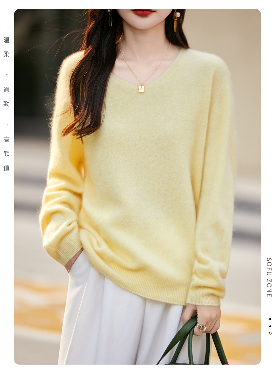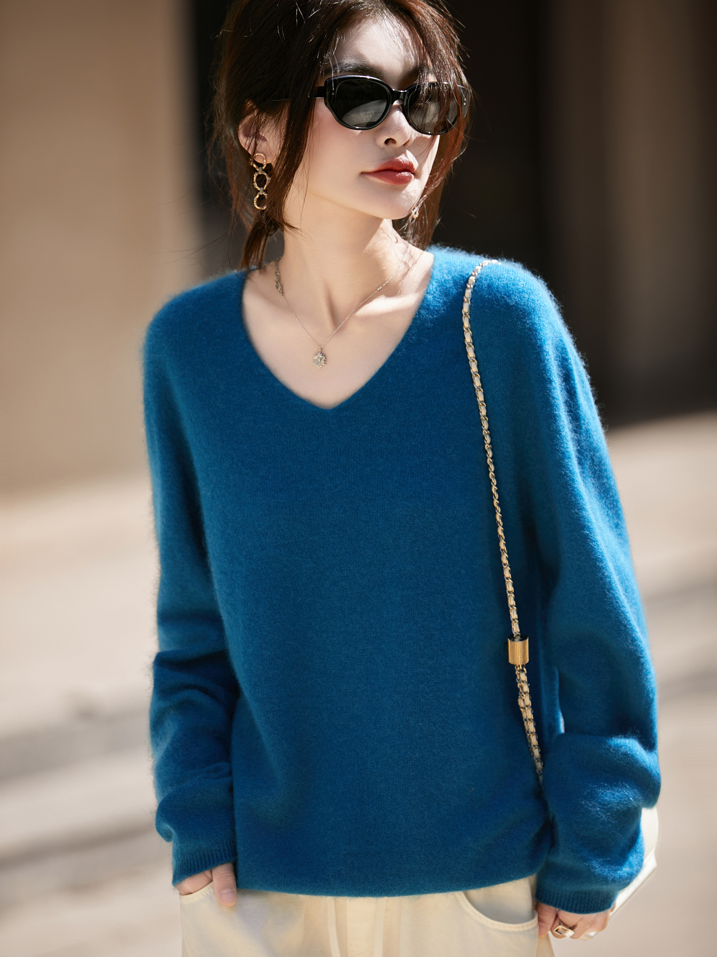 V-neck Cashmere Knit Women's Loose-fit Sweater